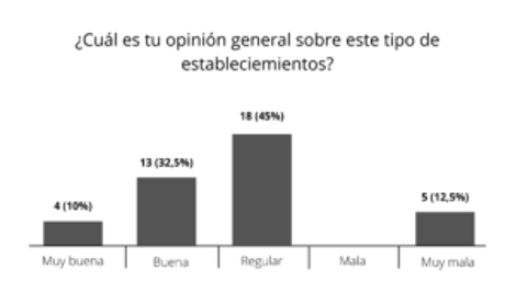En cuanto a saber qué es lo que valoran más en ese tipo de establecimientos, los sujetos respondieron (con valores del 1 siendo lo peor y 5 lo mejor):