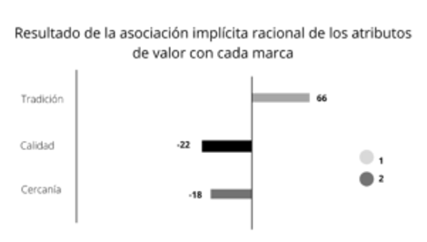 Una vez realizada la encuesta previa, seguidamente se llevó a cabo el Test de Asociación Implícita. Los resultados fueron los siguientes, donde se medía la tradición, la calidad y la cercanía, los atributos con los que se definía la empresa que nos pidió el estudio.